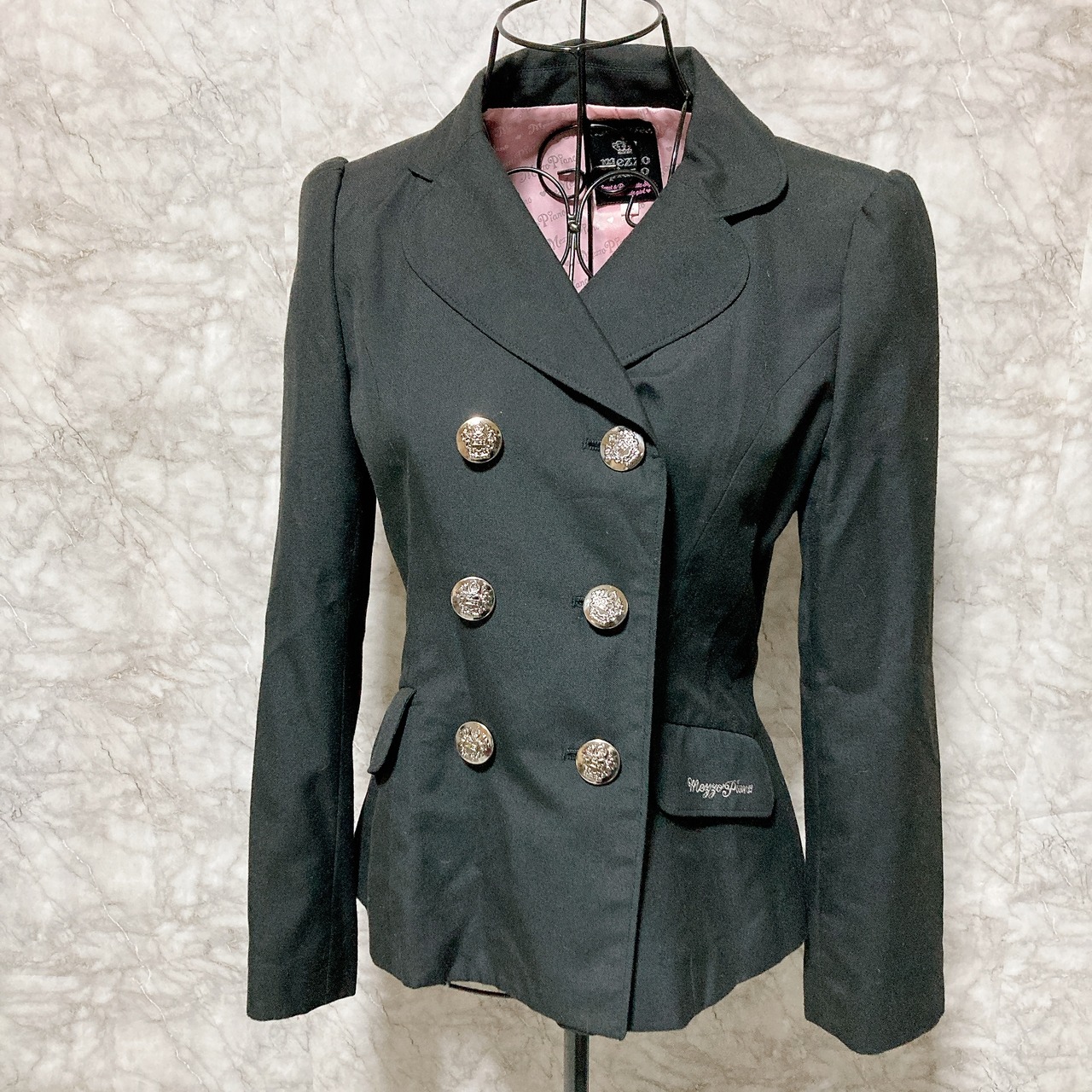 【美品】メゾピアノ ジャケット 160 L 黒 銀ボタン 裏地ピンク