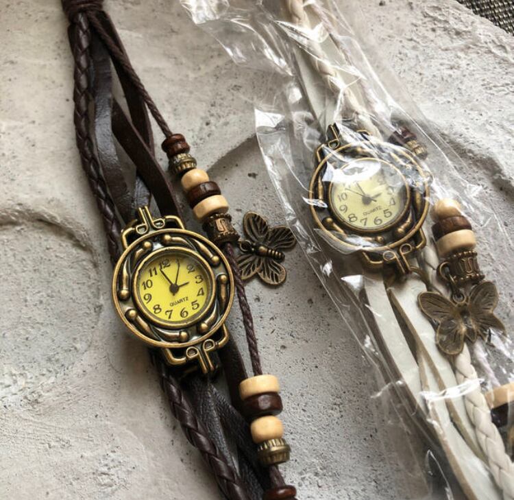 秋にピッタリのブレスレットタイプの 腕時計です。 ボタンタイプなので簡単にとめることができます。 カラー→ブラウン ホワイト
